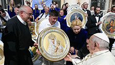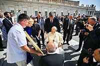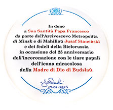 Папа Францішак атрымлівае ў дар ад пілігрымаў з Беларусі