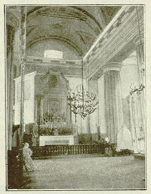 | Галоўны алтар з цудадзейным абразом Маці Божай у касцёле Нараджэння Найсвяцейшай Панны Марыі, Фота пач. ХХ ст., з кнігі «Nasze kościoły». |