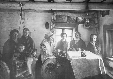 Працяг. Заходняе Палессе Этнограф П. Шэін пра Заходняе Палессе (ён не падзяляў Палессе на рэгіёны, аднак матэрыялы ён збіраў менавіта ў заходняй частцы) заўважыў, што: «В хатах, кроме стола и скамьи да лав, ничего нет. Стены голые: ни образов, ни картин нет, только местами видны деревянные крючки, вбитые в стены…»1. І далей ён працягвае: «Украшений домов крестьянами не наблюдается. Даже во многих домах икон не встретите»2. У якасці прыкладу ім абрана сяло Жытлін Слонімскага павета (цяпер у Івацэвіцкім раёне Брэсцкай вобл.). Верагодна, у больш аддаленых паўднёвых мясцінах — у глыбіні Палесся, а таксама на паўднёвым усходзе, этнограф зафіксаваў бы іншую карціну. Магчыма, тут меў месца і эканамічна-побытавы складнік. Так, яшчэ ў той час большасць хатаў палілася па-чорнаму, пячэй новага тыпу — з комінам — была адна на 10–12 ранейшых. Адпаведна, упрыгожванне хаты было бессэнсоўным, бо хутка ўсё пакрывалася куродымам: «к тому же нужно прибавить, что стены и потолок чернее сажи от дыму, и вся обстановка говорит столько же о вопиющей бедности, сколько и о поразительной неопрятности»3. Але калі такая сітуацыя і сапраўды існавала на час наведвання П. Шэінам гэтых мясцінаў, то неўзабаве яна змянілася. Калі абразы ў хатах палешукоў сталі масавымі, сказаць складана, аднак у міжваенны перыяд яны зафіксаваны некалькімі фатографамі. На здымку 1928 г. В. Ляхаўца, зробленым у вёсцы Кухоцкая Воля Пінскага павета (цяпер Зарэчанскі раён Ровенскай вобл. Украіны), прадстаўлена сялянская сям’я за сталом4. На фота добра бачна, што ў хаце знаходзяцца як мінімум чатыры абразы. На жаль, якасць выявы не дазваляе разгледзець сюжэты, аднак пра спосаб развешвання іконаў і пакрыццё іх ручнікамі атрымаць уяўленне можна.