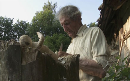 Думаю, што Віктар Аслюк перажыў узрушэнне не меншае, чым адкрывальнік пахавальні Небамуна, але, відаць, перажыў і непараўнаны сум, калі знайшоў на ўжо 20 гадоў закінутым палескім хутары адзінокага жыхара. Апошняга. Хутаранін жыве звыклым для кожнага селяніна жыццём і стварае з дрэва цэлую вёску з яе жыхарамі... Дзівак стварыў сваю мадэль жыцця, у якой, па звычцы здабываючы свой хлеб з потам, і сам хацеў бы жыць вечна, але ж пра такую гармонію ў сапраўдным жыцці можна толькі марыць... і працаваць, прыўносячы ў прыроду духоўны пачатак, здольны пераўвасобіць нават сырую асінавую чурку. Адухаўленне «мёртвага» матэрыялу адбываецца праз увасабленне драўляшкі ў кампазіцыйны матэрыял. Майстра стварыў драўляны народ паводле свайго вобразу і падабенства. І пасяліў яго ў Рай. А Рай для селяніна — гэта ціхае, сытае, разумнае жыццё ў працы і клопатах ад нараджэння і да смерці. З вераю ў Бога і ў царкве, і ў душы. Калі глядзіш на разьбяныя фігуркі, створаныя беларускім умельцам не для цемры пахавальні і не для царства ценяў, а для зялёнай травы, сонечнага дня, свежага ветру, шуму лістоты і высокага-высокага неба, успамінаецца глыбокая старажытнасць: рытуальныя фігуркі ўшэбці, глінянае войска кітайскага імператара, керамічныя фігуркі гульцоў у мяч з заходняй Мексікі. ...І стварыў Мікола Тарасюк сваю вёску, населеную драўляным народам з звычкамі жывых людзей, бо «птушкі жывуць там, дзе жывуць людзі, там, дзе грукае калодзежны ланцуг, дзе жнуць сярпамі жыта. Не стала тутака мужычка — і буслы адляцелі. А як жа мне без іх? Узяў ды зрабіў сабе». І сям’я буслоў разам з гняздом, выразьбяная ў натуральную велічыню і расфарбаваная здалёк на фоне неба, выглядае нібы жывая. І нават дождж ёй не страшны. ...Узяў і зрабіў народ, які пакінуў гэтыя мясціны дваццаць гадоў таму. А як жа без людзей адзінокаму дзеду? І вёску зрабіў, і мужычкоў, і бабаў, і дзяцей іх, і святароў, і цэрквы — усё, што мусіць быць у добрай, працавітай вёсцы, дзе людзі вераць у Бога і жывуць паводле разумнага сялянскага парадку. І цяпер ён — «прэзідэнт драўлянага народа». ...Ён гаворыць не ў камеру, не па просьбе рэжысёра. Ён гаворыць сам з сабою, як прывык гаварыць адзінокі чалавек. Ён расказвае людзям тое, што ім падабаецца слухаць. Злёгку акцёрствуе — прывык да гледачоў і ўвагі. Можна толькі здагадвацца, пра што ён маўчаў доўгімі зімовымі вечарамі і што расказваў сваім коцікам, сабакам, курам, гускам, каню і чарапасе... пакуль не стаў лаўрэатам, заслужаным народным умельцам — «залатыя рукі» і г. д. Калі глядзіш фільм Віктара Аслюка, не думаеш пра яго вядомасць, і гэта таксама вартасць фільма. «Кампанэла» з Пружаншчыны ўвасобіў у асінавых чурках сваю мару пра «вёску сонца» — ён зрабіў драўляную мадэль шчаслівага вясковага жыцця. Але...