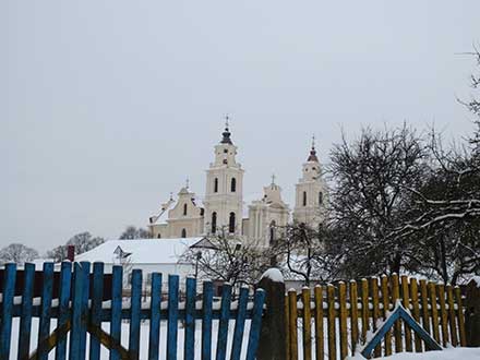 ...А цяпер зіма. Збіраючыся ў Будслаў, хваляваўся, як там дарога? Ці дабяруся да месца зімоваю парою на сваёй «Таёце»? Але надвор’е выдалася спрыяльнае, асаблівага снегападу не было. Да Даўгінава шлях мне знаёмы, а там ужо і Будслаў побач. Сумёты снегу абапал дарогі вымагалі быць уважлівым. У вандроўку (з гарачым сэрцам) выбраўся адзін — маляваць у зімовае надвор’е нікога не знайшлося... Да Вілейскага вадасховішча яшчэ было колькі машын — людзі ехалі на зімовую падлёдную рыбалку. Ад Касцяневічаў дарога пайшла праз лес — засыпаныя снегам хвоі былі вельмі маляўнічыя (часам прыпыняў машыну і фатаграфаваў). ...Велічны храм уразіў сваёю архітэктурнай дасканаласцю, нават нейкай скульптурнасцю ў стылі барока, пераходзячага ў класіцызм... Прастора плошчы, замеценая снегам, надавала касцёлу яшчэ большую ўрачыстасць... Архітэктурная структура галоўнага фасада, вертыкальныя пілястры і калоны, нібыта ружовы арган, гучалі «зімовай сімфоніяй». Пасля кароткай сустрэчы з пробашчам айцом Віктарам, які паказаў мне касцёл, трэба было спяшацца брацца за працу, пакуль не сцямнела. Зімовыя дні кароткія... Алейныя фарбы на марозе хутка ператвараюцца ў густую пасту... Мая звычка не апранаць рукавіцаў ці пальчатак на холадзе змушала працаваць хутка. Галоўнае было зафіксаваць убачанае менавіта ў такіх умовах... Адчуваў сябе, як птушка, — спяшайся, мастак, занатаваць... Потым дапрацоўваў у майстэрні... А колькі нязвыклых уражанняў выклікала аптычная грызайль, напісаная на біблійныя тэмы! Здзівіла і дасканала намаляваная кампазіцыя сюжэта «Папа Клімэнт VIII перадае абраз мінскаму ваяводу». І гэта зроблена ў далёкіх XVII–XVIII стагоддзях у нас на Беларусі!.. Нашымі майстрамі! Ёсць згадкі, што манументальныя аптычныя грызайлі зробленыя мастаком Казімірам Анташэўскім. Як усё сімвалічна пераплятаецца!.. У маёй майстэрні на варштаце ўжо каля дваццаці гадоў стаіць фігура Людвіка Кандратовіча (Уладзіслава Сыракомлі) — прачытаў у нарысе пра Мінск, што Сыракомля згадваў пра мінскага мастака Казіміра Анташэўскага... ...Будслаў усё як бы спіць. Заснаваны ў 1504 годзе, што пазначана пры ўездзе ў мястэчка, ён не ператварыўся ў буйнае месца за гэтыя стагоддзі. І ўражвае менавіта будслаўскі касцёл — сваёю веліччу... Колькі святыняў панішчана на Беларусі, а гэты касцёл захаваўся да нашых дзён... Маці Божая Будслаўская адорвае сваёю ласкаю людзей і спрыяе ўсім нам так, як могуць спрыяць нам нашы зямныя маці. Памятаю, як калісьці мая сяброўка Хрысціна распавядала мне пра тое, як маці ў маленстве будзіла яе ўранку, каб не спазнілася ў школу. Цеплыня матчынай рукі, якая, нібы сонечны праменьчык, ласкава кранала яе твар, дагэтуль памятаецца ёй... Так вось і мне мая маці, ужо цяжка хворая, гладзіла рукі й казала: «Твае рукі — мае рукі, успомніш, калі мяне не будзе...» Намаляваў я будслаўскі касцёл па просьбе рэдакцыі часопіса «Наша вера». Намаляваў яго з радасцю і з адчуваннем творчага шчасця, бо дакрануўся да нашай спрадвечнай святыні, і для мяне гэта было не цяжарам, а прыгожаю прыгодаю і аднадзённым зімовым пленэрам...