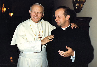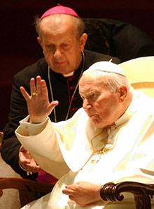 — У які момант Вы пераканаліся, што маеце дачыненне да святога? — Я пазнаёміўся з кардыналам Вайтылам, тады — святаром і біскупам, падчас вучобы ў духоўнай семінарыі ў Кракаве. Ужо пасля першай нашай сустрэчы ў мяне склалася ўражанне, што ён — выключны чалавек. Ён вылучаўся вялікаю пабожнасцю і глыбокаю малітваю. З’яўляючыся клерыкамі першага курса тэалогіі, мы дзівіліся з таго, як ён маліўся. На доўгіх перапынках, паміж лекцыямі, ён засяроджана, на каленях, маліўся ў семінарыйнай капліцы. Памятаю яго доўгія валасы, якія спадалі ў яго на твар. Так ён прабываў на малітве. Калі вяртаўся ў аўдыторыю на лекцыю, у нас стваралася ўражанне, што ён прыходзіць з сустрэчы, з размовы з самім Панам Богам. Ужо тады мы былі перакананыя ў тым, што гэты спакойны прафесар, які мог жартаваць падчас заняткаў са студэнтамі, жыве іншым жыццём, што ён з’яднаны з Панам Богам. І так было на працягу ўсяго яго жыцця, ажно да апошняй хвіліны.