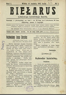 Стагоддзе таму ў Вільні перастала выходзіць першая беларускамоўная каталіцкая газета «Biełarus». Калі ў 2010 годзе ў Нацыянальнай бібліятэцы я ўпершыню перагарнуў старыя, пажоўклыя старонкі «Biełarusа», адчуў, што пад маімі пальцамі далёкі свет, у якім сто гадоў таму жылі нашыя продкі. Мае студэнцкія перажыванні можна было параўнаць з эмоцыямі археолага-пачаткоўца, які знайшоў каштоўны артэфакт. Я асцярожна гартаў палосы і бачыў перад сабой франтавыя атакі, пажар у вёсцы, незнаёмага святога Кнуда, апекуна Даніі, будаўніцтва касцёла ў Вілейцы, вершы, жарты, загадкі — усё, што цікавіла не толькі інтэлігента, але і звычайнага беларускага хрысціяніна, селяніна, які хацеў ведаць, што адбываецца ў свеце. І калі прааналізаваць кожны 121 нумар газеты, якая выходзіла са студзеня 1913 года да жніўня 1915 года, можна лёгка скласці хроніку жыцця беларуса, адчуць праблемы, якія яго хвалявалі. У іх асвятленні, у тым ліку, была адна з задачаў выдання. «…і цяпер народ беларускі не мае чаго есці: голад у целе, голад у душы. Дзеля таго мы прыходзім да вас, мілые браты беларусы, і нясём вам страву хрысціянскую, — звярталіся да чытачоў у дэбютным нумары ад 13 студзеня 1913 года супрацоўнікі газеты. — Хочам знаць вашае гора, вашыя недастаткі, каб прыйсці з помаччу, з парадай… Дзеля таго людзі добрай волі пачынаюць друкаваць «Беларуса». А пачалася гісторыя газеты яшчэ задоўга да выхаду першага нумара. У 1904 годзе Віленскім біскупам прызначылі адукаванага прыбалтыйскага немца Эдварда Ропа. У Вільні ён адразу праявіў сябе цікавым чынам: нягледзячы на паходжанне, Эдвард Роп актыўна выступаў за ўвядзенне літоўскай і беларускай моваў у касцёльнае жыццё. Паводле Першага ўсеагульнага перапісу насельніцтва Расійскай імперыі, праведзенага ў 1897 годзе, значную частку Віленскай губерні складала беларускамоўнае насельніцтва (56%)1. І ідэя выдаваць беларускую каталіцкую газету ў той час ужо была, і ўзнікла яна менавіта ў біскупа Эдварда Ропа. Ксёндз Адам Станкевіч, якога празвалі рыцарам беларускага адраджэння, калісьці пісаў, што Эдвард Роп літаральна «насіўся з думкай выдаваць у Вільні народную каталіцкую газету па-беларуску». Праўда, аднаго запалу ў гэтай справе было мала. Зразумела, далёка не ўсе падтрымалі яго ідэю, а ў 1907-м актыўнага біскупа загадам міністра ўнутраных спраў наогул адхілілі ад кіраўніцтва дыяцэзіяй. Тым часам ужо распачала і завяршыла сваю дзейнасць «Наша Доля», неафіцыйны орган Беларускай сацыялістачнай грамады; друкавалася «Наша Ніва», каля якой трымаўся беларускі творчы асяродак. Пісалі ў гэтых газетах разнастайныя тэксты — ад літаратурных твораў да востра-сацыяльных артыкулаў, — але рэлігійныя пытанні, як сцвярджаў Адам Станкевіч, на старонках выданняў не закраналіся. Пры гэтым патрэба ў каталіцкай газеце з кожным годам узрастала. І Антон Бычкоўскі, будучы рэдактар «Беларуса», нават узяў дазвол на выхад газеты ў губернатара. Але выдаваць газету ён не спяшаўся. Патрэбны былі фінансавыя сродкі, і ён не хацеў, каб годная справа абмежавалася двума-трыма нумарамі. Дапамога ў выніку прыйшла ад супрацоўнікаў… «Нашай Нівы», выдання, якое ідэалагічна у многіх пытаннях адрознівалася ад канцэпцыі «Biełarusа». Справа ў тым, што нашаніўцы выдавалі газету ў двух варыянтах: на так званай гражданцы і лацінцы. Калі з грашыма стала зусім складана, яны засяродзіліся вы