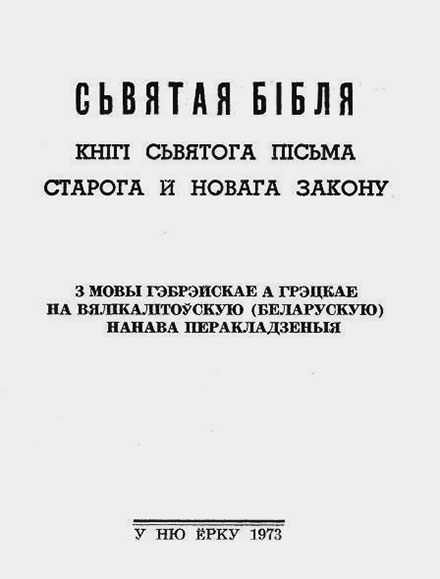 У 1970 г. быў выдадзены «Новы Закон»65 у перакладзе Янкі Станкевіча, а ў 1973 г. — поўная Біблія66 ў перакладзе з габрэйскай і грэцкай моваў у супрацоўніцтве з Майсеем Гітліным. Пераклад Бібліі быў ініцыяваны «Беларускім Біблійным камітэтам», створаным у 1965 г. у ЗША з мэтаю выдаць і распаўсюдзіць беларускую Біблію. У склад камітэта ўвайшлі М. Гітлін (дырэктар), Я. Станкевіч і Т. Сайка67. Пераклад быў зроблены паводле пратэстанцкага канону з арыгінала (Стары Запавет — з габрэйскай, Новы Запавет — з грэцкае мовы), тэкстуальна ён не саступае ў дакладнасці класічным перакладам. Адметнаю асаблівасцю перакладу з’яўляецца яго насычанасць архаічнымі старабеларускімі формамі і неалагізмамі. Доктар філасофіі Янка Станкевіч нарадзіўся 26 лістапада 1891 г. у сялянскай сям’і ў сяле Вурняняты (Арляняты) Крэўскай воласці Ашмянскага павета. Скончыў Віленскую беларускую гімназію і Пражскі ўніверсітэт. Працаваў выкладчыкам у Варшаўскім і Віленскім універсітэтах. У творчай дзейнасці выступаў пад псеўданімамі Брачыслаў Скарынін, Ян Янушонак. Памёр 16 жніўня 1976 г. у ЗША68. На жаль, моўны пурызм Янкі Станкевіча зрабіў гэты пераклад цяжкачытэльным: падаецца, што Я. Станкевіч перш за ўсё быў заняты пошукамі «мэта-мовы», цікавай толькі вузкім спецыялістам. З 1970 г. распачынае працу над сваім перакладам кс. Уладзіслаў Чарняўскі. Плён ягонай працы пасля выдання паасобных кніг Старога Запавету і двух выданняў Новага Запавету аформіўся ў выглядзе поўнай Бібліі ў выданні Біблейскага таварыства69 ў 2012 годзе. Нарадзіўся кс. Уладзіслаў 14 студзеня 1916 г. у засценку Амружын Гарадзенскай губерні. Паходзіў з сялянскай сям’і. Скончыў 4 класы ў Вішнеўскай школе, вучыўся ў Крэўскай гімназіі. У 1931–1933 гг. навучаўся ў настаўніцкай гімназіі ў Барунах Ашмянскага павета70. Пад уплывам свайго дзядзькі кс. Францішка Чарняўскага паступіў у гімназію ў Друі пры кляштары марыянаў. Пазней успамінаў: «Я ўжо з Друі быў сьведамым. Як калом увагналі, калі ксяндзоў-беларусаў вывозілі, усё гэта я перажываў. Таму ня трэба мне ні гаварыць, ні вучыць пра беларускасць»71. Пасля сканчэння гімназіі ў Друі паступіў у навіцыят марыянаў. Падчас рэпрэсіяў польскіх уладаў супраць беларускіх ксяндзоў-марыянаў з’ехаў з мястэчка. Жыў у Вільні72. Кс. Уладзіслаў Чарняўскі атрымаў святарскае пасвячэнне ў кастрычніку 1944 г. з рук літоўскага біскупа Мечыслава Райніса. Першую Імшу цэлебраваў у Крэве на беларускай мове. Вярнуўшыся ў Вільню, пэўны час працаваў у касцёле св. Ігната. Пасля арышту кс. Адама Станкевіча разглядаўся як кандыдат на ягонае месца, але прызначэнне не адбылося. Некаторы час працаваў у літоўскіх касцёлах ва Укмэрге, Гегужыне, Ернішках, Варэне, Эйшышках, затым перавёўся ў Беларусь. Напачатку працаваў у Войстане на Смаргоншчыне, а з 1954 г. — у вішнеўскім касцёле на Валожыншчыне.