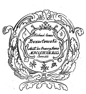 Перамаляваў я яшчэ і амбону, што знаходзіцца ў касцёле, якую рэстаўратар-арганіст, на шчасце, не закрануў. Сваім кшталтам і разьбою яна нагадвае амбону, з якой тры стагоддзі назад славуты Пётр Скарга залатою пальшчызнаю нёс слова Божае вернікам Вільні ў капліцы св. Казіміра. Пад галоўным алтаром касцёла знаходзіцца даволі вялікі магільны склеп; у ім нямала трунаў рознай велічыні, амаль усе гнілыя. Шмат у якіх я падымаў века, і ў кожнай з іх нічога іншага, акрамя парэштак касцей, я не знайшоў. У некалькіх з іх былі змешчаны астанкі ксяндзоў, як можна было здагадацца па парэштках, што засталіся ад арнатаў. Найбольшы гістарычны інтарэс, найбольшую мясцовую цікавасць уяўляюць тут званы, размешчаныя на адной з вежаў касцёла, бо на другой знаходзіцца гадзіннік. Гэта вялікія бронзавыя званы. Подступ да іх даволі цяжкі, немагчыма абысціся без спецыяльнай прылады, каб усё на такой вышыні можна было добра разгледзець. З дапамогаю прыемнага і шчырага ў сваім імкненні мне дапамагчы кс. Стшалецкага за пару гадзін былі пастаўлены рыштаванні, з якіх мне ўдалося агледзець самы вялікі звон. На ім з аднаго боку адлітая выява Маці Божай са святым Дзіцяткам на руках; пад ёю — вялікіх памераў, падзелены на чатыры часткі, гербавы шчыт Бжастоўскіх і іх сваякоў; вакол — шаснаццаць першых літараў, якія азначаюць імя, прозвішча і тытулы фундатараў.