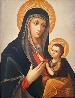 Рыхтуючы публікацыю пра сучасныя копіі і спісы абраза Маці Божай Будслаўскай, я разумеў, што сабраць у адным матэрыяле ўсе звесткі пра спісы і копіі абраза немагчыма, але вельмі імкнуўся, каб гэтая інфармацыя была найбольш поўная. Збіраць звесткі пра сучасныя спісы абраза Маці Божай Будслаўскай я пачаў у 2003 годзе — тады ў нашым выдавецтве мы рыхтавалі да выдання кнігу Аляксандра Ярашэвіча «Маці Божая Снежная ў Беларусі», абмяркоўвалі праекты будучых выданняў і тое, якія для гэтага трэба сабраць матэрыялы. З таго часу я і збіраў на сваім камп’ютары графічную і тэкставую інфармацыю пра беларускія абразы Маці Божай. А ў 2004 годзе ў нашым выдавецтве выйшла наступная кніга Аляксандра Ярашэвіча — «Абраз Маці Божай Будслаўскай», у якую былі ўключаны звесткі і пра сучасныя спісы абраза Маці Божай Будслаўскай. З таго часу я не прыпыняў свае дзейнасці па зборы інфармацыі пра сучасныя спісы абраза Маці Божай Будслаўскай у надзеі, што калі-небудзь будзе другое выданне кнігі Аляксандра Ярашэвіча пра абраз Маці Божай Будслаўскай, і тады мы яго значна дапоўнім новымі копіямі і спісамі будслаўскага абраза. Мая шматгадовая праца ў выдавецтве «Про Хрысто», а таксама ў часопісах «Наша вера» і «Аve Maria» вельмі спрыяла збору інфармацыі, звязанай з пашырэннем культу абраза Маці Божай Будслаўскай. Было сабрана даволі шмат матэрыялу. Але, на жаль, другога выдання кнігі Аляксандра Ярашэвіча не адбылося, бо ў 2016 годзе ён адышоў у вечнасць. І калі ў 2023 годзе ў сувязі з юбілеем 25-годдзя каранацыі абраза Маці Божай Будслаўскай з’явілася нагода для публікацыі новага матэрыялу, мне ўжо самому давялося рыхтаваць яе. Нягледзячы на тое, што было сабрана і апрацавана мноства матэрыялу, аднак па некаторых абразах так і не ўдалося знайсці звесткі пра аўтарства і гісторыю іх з’яўлення. І вось ужо пасля публікацыі ў часопісе «Наша вера» (№ 2, 2023 г.) і ў кнізе «Апякунка Беларусі» («Про Хрысто», 2023) да мяне стала трапляць тая інфармацыя, якая дазволіла ўдакладніць і дапоўніць гісторыю некаторых абразоў, а таксама знайсці новыя спісы абраза Маці Божай Будслаўскай. Таму я прапаную гэты невялікі артыкул-дапаўненне да апублікаванага раней. Праглядаючы фотаздымкі, зробленыя падчас Будслаўскага фэсту 2023 года, на адваротным баку працэсійнага ферэтрона з абразом Маці Божай Будслаўскай я заўважыў латунную табліцу. Якасць фотаздымка дазволіла павялічыць і прачытаць выбіты на ім тэкст, які паведамляе: «Гэтая Ікона, якую ахвяруе касцёл Св. Сымона і Св. Алены г. Мінска айцам-бэрнардынам з Будслава, была ўзнесена альпіністамі на адзін з хрыбтоў Гімалаяў у Паўночнай Індыі ў 2006 г. Адтуль Маці Божая благаславіла ўвесь свет і Беларусь. Год Гасподні 2007». Гэта вельмі істотныя звесткі пра гісторыю абраза працэсійнага ферэтрона. Каб удакладніць прачытанае, я пачаў пошук у інтэрнэце і праз некаторы час знайшоў артыкул «Падарожжы з Будслава ў Лондан і ў Гімалаі», які ў 2014 годзе апублікавала мастацтвазнаўца Ала Нароўская. «У 2006 годзе па просьбе пробашча, магістра тэалогіі Уладзіслава Завальнюка, мастачка Эвеліна Крыштаповіч напісала ў дар касцёлу дакладную копію іконы памерам 72,5×65,5 см. У тым жа годзе група ветэранаў альпінізму (Леанід Галубоўскі, Ігар Герасімовіч, Аляксандр Барысевіч ды іншыя) рыхтавалася да спартыўна-даследчай экспедыцыі па святых месцах старажытных цывілізацый паў