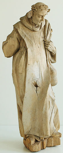 Скульптура св. Яна Божага, хутчэй за ўсё, была створана на пачатку XVIII ст. невядомым аўтарам4. Постаць святога гнуткая і дынамічная. Яна спалучае ў сабе малітоўную засяроджанасць духу і лёгкі нахіл цела пад цяжарам мяхоў, поўных сабранай міласціны. Скульптура мае вышыню 135 см, выканана з ліпы і, верагодна, была пакрытая паліхроміяй пад колер шэрага каменя. Уражваюць дакладныя рысы твару і далікатныя дэталі ацалелай левай рукі. Можна з упэўненасцю сцвярджаць, што скульптура не знаходзілася ў драўлянай капліцы на могілках. Але адкуль жа яна была перанесеная? Магчыма, з вялікага барокавага кармэліцкага касцёла, які быў перароблены ў 1866 г. пад праваслаўную царкву, у 1920 г. вернуты католікам, а ў 1963 г. канчаткова зачынены савецкімі ўладамі. (І цяпер у цэнтры горада ўзвышаюцца толькі велічныя руіны былой святыні). Таксама магчыма, што скульптура паходзіць са шпіталя, заснаванага ў Вялікай Бераставіцы Юрыем і Амеліяй Мнішкамі ў 1741 годзе.5 Ёсць версія, што фігура была перавезена з якога-небудзь блізкага кляштара баніфратраў (напрыклад, з Гародні, ад якой да Вялікай Бераставіцы каля 60 км), Наваградка (каля 150 км ад Вялікай Бераставіцы), Высокалітоўска (каля 130 км), якія былі скасаваныя ў 1830–1840-я гады. Аб тым, што пра баніфратраў і, адпаведна, пра святога Яна Божага ў ВКЛ ведалі, можна меркаваць па інфармацыі, якую пакінуў Стэфан Росяк у сваёй кнізе «Bonifratrzy w Wilnie»: «Тут (у віленскім касцёле баніфратраў) у галоўным алтары пануе Маці Божая, Аздараўленне Хворых, на Літве Баніфрацкай званая... цешылася і цешыцца розгаласам і пашанаю ва ўсёй Літве» 6. Апрача таго, аб папулярнасці баніфратраў на нашых землях сведчыць і тое, што ў Віленскім канвенце ў 1761–1825 гг. адбывала навіцыят нямала братоў, якія паходзілі з мясцовасцяў, даволі аддаленых ад баніфрацкіх кляштараў. Напрыклад, з-пад Мядзела (каля 130 км ад Менска і Вільні), са Слуцкага павета (каля 100 км ад Менска), з Ігуменскага павета (каля 70 км ад Менска)7. Памяць пра святога Яна Божага і яго духоўных сыноў, нягледзячы на шматлікія віхуры гісторыі, на Беларусі не загінула і будзе трываць, бо яны аказаліся вернымі ў сваім служэнні, а з часам можна спадзявацца на адшуканне новых слядоў дзейнасці добрых братоў на нашай зямлі.