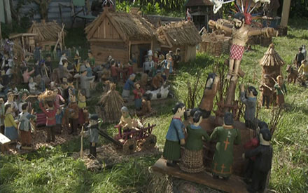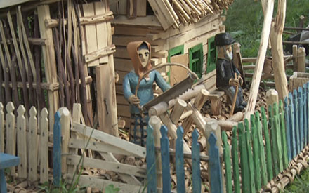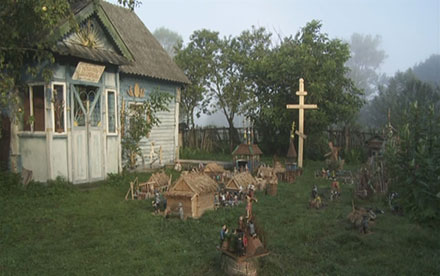 ...«Макет аб’екта ў паменшаным маштабе або ў натуральную велічыню, пазбаўлены, як правіла, функцыянальнасці дадзенага аб’екта, прызначаны для прадстаўлення аб’екта і выкарыстоўваецца ў тых выпадках, калі прадстаўленне арыгінальнага аб’екта неапраўдана дарагое, немагчымае або проста немэтазгоднае» (Вікіпедыя). Так. І дорага, і немагчыма, і, напэўна, немэтазгодна. «Мы можам быць цікавыя толькі як носьбіты беларускай культуры», — заклікае Віктар Аслюк і робіць усё, каб выявіць гэтую культуру, што знікае разам з яе носьбітам — вясковым людам, які не можа замяніць драўляным нават народны майстар. «Жывога чалавека зрабіць лягчэй, чым драўлянага», — разважае дзед Мікола, але чамусьці нашы вёскі не звіняць ад дзіцячых галасоў... Ілюзію шчаслівага жыцця захоўвае ілюзія кінематографа. Але не ўсё так добра. «Узяў бы, здаецца, „тулку“ і стрэліў у тэлевізар», — гаворыць дзед Мікола, не прыдуманы, не просты, не драўляны беларускі мужычок. Прызнаюся — і ў мяне бывае такое жаданне. Але, калі на экране — фільм Віктара Аслюка, «тулку» браць не хочацца...