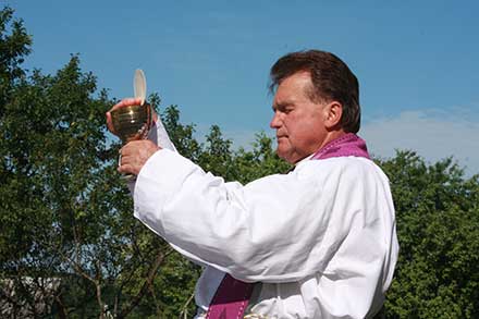 Многія з нас раней ішлі і ў звычайнай пілігрымцы, і мы добра адчуваем розніцу. Там дух, так бы мовіць, вайсковага маршу — адпаведны тэмп, гучныя спевы, воклічы. У нас пераважае цішыня. Ідзём паволі. Адну частку Ружанца з разважаннямі молімся каля дзвюх гадзінаў. У цішыні вучымся слухаць голас Бога, і навакольная прыгажосць гэтаму вельмі спрыяе. Ідзём пераважна па лесапаласе. Водар кветак, чысціня паветра, блакіт нябёсаў, птушыныя спевы... Усё гэта радуе душу, дае супакой і адчуванне сапраўднага шчасця, свабоды. Першыя гады мы ішлі па асфальце, несучы на сабе ўсе свае рэчы ў цяжкіх заплечніках. Потым вырашылі, што мікрааўтобус будзе давозіць нашыя рэчы да пункту начлегу. Зразумелі і тое, што трэба змяніць маршрут. Наш пілігрым Ганна Дубовік, маці ксяндза Дзмітрыя Дубовіка, распрацавала карту новага шляху (яна па прафесіі картограф). Спачатку гэты маршрут апробавалі на машынах і роварах, а потым смела пайшлі. Пілігрымка — гэта не толькі сведчанне веры, а яшчэ і евангелізацыя. Калі мы прыходзім у вёску на начлег, людзі цікавяцца, хто мы і для чаго так далёка ідзём. Усе вельмі здзіўляюцца, што мы ідзём галодныя. Многія задумваюцца і пра свой пост. Разыходзячыся потым па дамах, нашыя пілігрымы дапазна размаўляюць з людзьмі пра веру, пра Бога... А цяпер — пра тое, з чаго ўсё пачалося. У нашай парафіі склалася традыцыя падчас Вялікага посту перажываць сераду, пятніцу і суботу на хлебе і вадзе. Хтосьці так посціцца адзін дзень, хтосьці два, а некаторыя і тры. Каля алтара стаіць асвечаная вада, людзі бяруць яе, атрымліваючы благаслаўленне на такі пост. Спачатку было ўсяго тры-чатыры тысячы чалавек, а цяпер даходзіць і да сямі тысячаў тых, хто хоць адзін дзень на тыдзень посціцца на хлебе і вадзе. І я падумаў, а чаму б нам і ў пілігрымцы да Будслава не пасціцца вось так. У пілігрымцы па Святой Зямлі я трываў у шчырым посце 9 дзён! Выпадковых людзей у гэтай справе няма. Да пакутнай пілігрымкі трэба рыхтавацца і духоўна, і фізічна. Выношваю ідэю зрабіць яшчэ адну пілігрымку ў Будслаў, якая б спажывала толькі свежавыціснутыя сокі. Гэта для тых, хто не падрыхтаваны ісці толькі на вадзе альбо на хлебе і вадзе. Аднак пакуль што дактары не дазваляюць гэтага рабіць. Хачу запрасіць усіх вернікаў далучацца да нашай пілігрымкі. Дарэчы, 5 чэрвеня, на дні святарскай сустрэчы, наш арцыбіскуп Тадэвуш Кандрусевіч сказаў: «Аб’яўляйце вернікам, каб загадзя запісваліся ў пешую пілігрымку ў мінскай катэдры, бо кухня там можа абслугоўваць не больш за 400 чалавек. Тыя, хто спозняцца, няхай ідуць у галодную пілігрымку з ксяндзом Уладзіславам Завальнюком». Так што чакаем! Да сустрэчы! Запісала Галіна Калевіч.