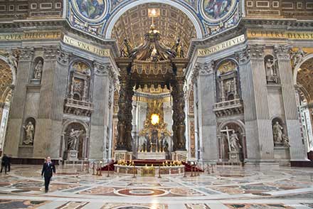 Працуючы над купалам, Мікеланджэла ўважліва вывучаў рымскі помнік антычнага дойлідства — Пантэон, купал якога на працягу стагоддзяў захапляў архітэктараў і інжынераў. Каб умацаваць канструкцыю цэглавага купала, Мікеланджэла зрабіў яе двухслойнай (па прынцыпе трубы), што павялічыла яе стабільнасць (трубу значна цяжэй сагнуць і парушыць, чым аднаслойны аб’ект). Да таго ж, знешні слой купала мае 16 каменных рэбраў (яны выразна чытаюцца ў экстэр’еры купала), што таксама ўмацавала канструкцыю. Аднак Мікеланджэла не дажыў да свайго інжынернага трыумфу. Купал (самы высокі ў свеце) быў завершаны ўжо пасля яго смерці Джакама да Віньёлам і Джорджа Вазары паводле ягоных чарцяжоў. Сам Мікеланджэла паспеў выканаць падкупальны барабан, упрыгожаны 16-цю аркамі з парамі карынфскіх калонаў. Магутныя, як і ўсё ў гэтым саборы, яны абрамляюць шырокія праёмы вокнаў (якія дазваляюць аблегчыць ціск барабана на ніжэйшыя канструкцыі). Мікеланджэла вывучаў шэдэўр заснавальніка рэнесансавай архітэктуры Брунэлескі — купал сабора Санта Марыя дель Ф’ёрэ ў Фларэнцыі. Як і папярэднік, ён таксама пайшоў на выцягванне формы купала ўверх (яйкападобная або авалападобная форма), але значна меншае, чым у фларэнційскай пабудове. Мікеланджэла цікавіўся і падкупальнай аркадай Брунэлескі, але пакпіў з яе, называючы «клеткаю для саранчы». Ён быў майстрам тытанічных формаў і кампазіцый. Карла Мадэрна завяршыў галоўны фасад сабора ў 1614 годзе. Ён прыклаў усе намаганні, каб захаваць рытміку і вобразнасць, зададзеную Мікеланджэла. За гэта яму давялося вытрымаць несправядлівую крытыку сучаснікаў — панавалі ўжо зусім новыя мастацкія густы. Зразумела, што пазнейшыя пакаленні былі ўдзячныя Мадэрну за тое, што ён пазбегнуў эклектычнага вырашэння. Каласальныя карынфскія калоны і пілястры ўзнімаюцца праз два ярусы і трымаюць строгі антаблемент. Атык фасада вянчаюць скульптуры: фігуры Хрыста, Яна Хрысціцеля і апосталаў (акрамя Пятра). У цэнтры кампазіцыі, пад самым франтонам паміж калонамі, знаходзіцца Лоджыя благаслаўлення, адкуль вернікам паведамляюць пра абранне новага Папы. Коплекс сабора і плошчы святога Пятра быў завершаны ў 1667 годзе Джавані Бэрніні самым яркім ягоным архітэктурным творам — каланадаю (гэта дзве паўкруглыя каланады тасканскага ордэра, якія кампазіцыйна далучаныя праз дзве карацейшыя простыя каланады да сабора, але не змыкаюцца з ім). Мільёны пілігрымаў, якія з усіх канцоў зямлі ішлі і ідуць у хрысціянскі Рым, перажываюць незабыўнае ўражанне, калі трапляюць у цудоўны свет саборнага комплексу. Каланада і сабор маюць агульную сімвалічную форму ключа святога Пятра. ...І вось расчыняюцца гіганцкія дзверы сабора. Гармонія інтэр’ераў сабора цалкам рэнесансавая. Як і ўсё ў гэтай пабудове, інтэр’еры ўражваюць каласальнымі памерамі, прасторы здаюцца бясконцымі, касмічнымі. Аркі, скляпенні, пілястры — усё падпарадкавана строгім лініям і прапорцыям, што прачытваецца вельмі выразна, нягледзячы на багацце пластычных дэталяў. ...Патрэбна цэлая кніга, каб распавесці пра ўсе мастацкія каштоўнасці і святыні, якія жывуць у суладдзі сабора. Мы абмяжуемся самым галоўным: у канцы цэнтральнай навы знаходзіцца бронзавая статуя св. Пятра, створаная ў XIII стагоддзі Арнольфа дзі Камбіа. Вернікі лічаць яе цудадзейнай і прыкладаюцца вуснамі да яе бронзавай нагі. У перш
