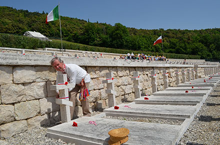 У 1945 г. яшчэ ў Італіі, а ў 1947–1948 гг. у Брытаніі беларускія жаўнеры актыўна ўключыліся ў беларускае культурнае жыццё. У гэты ж час пачаўся працэс дэмабілізацыі. Многія вайскоўцы вярнуліся на Радзіму, але ў 1950–1951 гг. былыя змагары з фашызмам былі рэпрэсаваныя, асуджаныя на 10 гадоў і высланыя разам з сем’ямі ў Іркуцкую вобласць. Толькі тыя ўдзельнікі італьянскай кампаніі, якія вярнуліся ў Беларусь пасля 1960 года і пазней, пазбеглі рэпрэсіяў бальшавіцкага рэжыму, а таксама тыя, хто застаўся на Захадзе. Па вяртанні на Радзіму з высылкі некаторыя камбатанты Монтэ-Касіна, нягледзячы на раненні і кантузіі пражылі доўгае і плённае жыццё. Так, напрыклад, Якуб Конан з мястэчка Бярэзінскае Маладзечанскага раёна пражыў 100 гадоў і адышоў у іншы свет у 2013 годзе. У зялёнай даліне, ніжэй за кляштар Монтэ-Касіна (ён займае верхнюю пляцоўку гары на вышыні 527 м), збудаваны мемарыял у памяць польскіх жаўнераў, якія загінулі пры штурме нямецкай цытадэлі, і цвінтар, на якім пахаваныя ўсе жаўнеры і афіцэры Войска Польскага. На гэтым цвінтары пахаваныя і больш за 180 беларускіх жаўнераў. На кожнай магіле стаіць белы крыж з надпісам імя і прозвішча, датаў жыцця і месца нараджэння. На магілах католікаў стаяць каталіцкія крыжы, на магілах праваслаўных — праваслаўныя. Нашыя жаўнеры фактычна былі з усёй Заходняй Беларусі: Вільні, Гародні, Берасця, Ваўкавыска, Баранавічаў, Ліды, Валожына, Пінска, Браслава, Паставаў і іншых гарадоў, мястэчак і вёсак. Мы павінны быць удзячнымі польскай дзяржаве, якая збудавала гэты мемарыял, увекавечыўшы памяць і нашых жаўнераў! 20 траўня 2014 г. у Італію прыляцела зусім невялікая група мастакоў для правядзення пленэра на месцы баявых дзеянняў на гары Монтэ-Касіна: сябры Беларускага саюзу мастакоў Алесь Цыркуноў і аўтар гэтых радкоў, а таксама сябра Беларускага саюзу народных майстроў Юрась Камандзірчык і Вітаўт Купава — выпускнік Каледжа мастацтваў імя І. Ахрэмчыка. Перакладчыцай, правадніцай і зусім незаменным чалавекам у гэтай кампаніі была Наста Цыркунова, якая ўжо 3 гады жыве ў Італіі. Зразумела, што найважнейшай місіяй нашай дэлегацыі было ўшанаванне памяці беларускіх жаўнераў, якія тут загінулі і пахаваныя на цвінтары мемарыяла Монтэ-Касіна. Да падножжа мемарыяла намі былі ўскладзеныя беларускі сцяг, кветкі і бел-чырвона-белая стужка з надпісам. Сёлета на юбілейных святкаваннях ужо не было ні беларускай дэлегацыі камбатантаў Монтэ-Касіна, ні дэлегацыі беларускіх жаўнераў з замежжа. Гэта было відаць і па тых вянках, якія ўсклалі розныя дэлегацыі свету. І мы зразумелі, наколькі важным быў наш прыезд на Монтэ-Касіна. Цяпер клопат па ўшанаванні памяці герояў італьянскай кампаніі ляжыць цалкам на плячах грамадскіх арганізацыяў Беларусі. Наша ўдзячнасць палеглым і тым нешматлікім былым жаўнерам корпуса Андэрса, якія жывуць у вольным свеце. Нізкі ім паклон! Фота В. Купавы і Ю. Камандзірчыка.