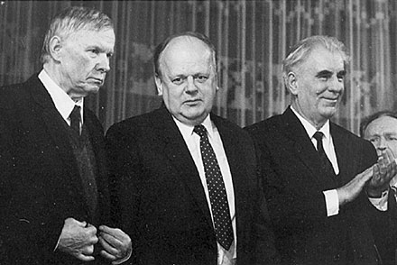 | Васіль Быкаў, Станіслаў Шушкевіч і Ніл Гілевіч. |