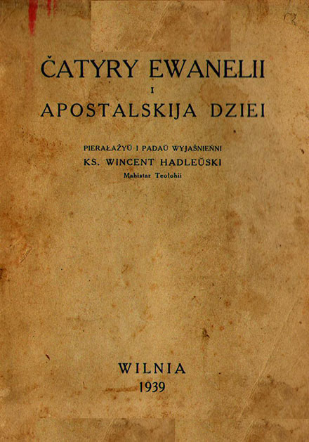 Пераклады Бібліі на родную мову ў ХХ стагоддзі Адным з першых сярод беларускага каталiцкага духавенства, хто звярнуў увагу на праблему перакладу Бібліі, быў бiскуп-суфраган Магiлёўскай архідыяцэзii Сцяпан Данiсевiч. У 1906 г. ён у Пецярбургу перавыдае «Elementarz dla dobrych dzietоk katolikаu». Бiскуп Данiсевiч заахвочваў беларускiх святароў пiсаць i выдаваць рэлiгiйныя кнiгi на беларускай мове i сам цэнзураваў некаторыя з iх перад тым як даць дазвол на друк, — да біблійных перакладаў на пачатку ХХ ст. звярнуліся многія каталіцкія святары. Пасля Першай сусветнай вайны першым выданнем, якое ўключала біблійныя ўрыўкі, стала «Niadzielašnija Ewanhielii i nawuki» кс. Ільдэфонса Бобіча ў трох тамах. Нарадзіўся кс. Бобіч 22 студзеня 1890 г. у сям’і небагатага беларускага селяніна ў вёсцы Дзедзіна Дзісенскага павета, што на Віцебшчыне. Вучыўся ў Ковенскай гімназіі, якую скончыў у 1909 годзе14. У 1911 г. скончыў Віленскую духоўную каталіцкую семінарыю. Вышэйшую духоўную адукацыю атрымаў у Рыме ў Collegium Germanicum (навучаўся з 1912 г.), стаў доктарам філасофіі. Святарскае пасвячэнне атрымаў 15 ліпеня 1915 года. Cлужыў вікарыем у Друі і пробашчам на Дзісеншчыне (1917–1920 гг.). У 1921–1923 гг. выкладаў Закон Божы ў Віленскай беларускай гімназіі. Падчас Другой сусветнай вайны быў арыштаваны нямецкімі акупацыйнымі ўладамі. Памёр неўзабаве пасля вызвалення з турмы (па іншых звестках — расстраляны фашыстамі). Пахаваны ў м. Іўе15. «Niadzielašnija Ewanhielii i nawuki» — фактычна найлепшы беларускі падручнік па евангельскай экзэгетыцы і касцёльным красамоўстве. У прадмове да кнігі яе рэдактар-выдавец кс. Адам Станкевіч робіць экскурс у пачатак ХVI ст., акцэнтуючы ўвагу на тым, што, як у часы Францыска Скарыны царкоўнаславянская мова была малазразумелай народу, так і цяпер Божае слова малазразумелае і малакарыснае на польскай мове, а там, дзе няма разумення Святога Евангелля, няма «а ні Богу ко чті», а ні «людзям посполітым к научэню». «Niadzielašnіja Ewanhielii i nawuki» І. Бобіча фактычна былі зборам казанняў (навукаў), складзеных паводле Новага Запавета і багаслоўскай думкі ў праекцыі на патрэбы духоўнага аднаўлення, таму былі настольнымі кнігамі святароў, якія прамаўлялі казанні на беларускай мове. Існуе меркаванне, што біблійныя тэксты, надрукаваныя ў гэтай кнізе, не з’яўляюцца перакладамі кс. Бобіча, а належаць кс. Адаму Лісоўскаму. Кс. Адам Лісоўскі нарадзіўся ў 1882 г. у вёсцы Каранды Ашмянскага павета Віленскай губерні. У 1903 г. скончыў Віленскую духоўную семінарыю, пасля навучаўся ў Духоўнай каталіцкай акадэміі ў Санкт-Пецярбургу, атрымаў святарскае пасвячэнне ў 1907 годзе16. 31 мая 1922 г. быў арыштаваны савецкімі ўладамі і асуджаны на 5 гадоў. Адбываў пакаранне ў турмах Мінска, Масквы і Яраслаўля. 28 красавіка 1924 г. пасля абмену палітычнымі вязнямі трапіў у Польшчу. Служыў у Гарадзішчы каля Пінска і ў Віннай на Падляшшы. Выступаў за беларусізацыю Каталіцкага Касцёла ў Беларусі17. Памёр 9 кастрычніка 1929 г., пахаваны ў Польшчы. Паводле сведчанняў біскупа Чэслава Сіповіча і Янкі Садоўскага, кс. Лісоўскім (прыблізна ў 1907–1922 гг.) былі перакладзеныя Апакаліпсіс св. Яна, Дзеі Апосталаў, Пасланні св. Паўла да Рымлянаў, Галатаў, Карынцянаў18. Язэп Германовіч выказаў меркаванне, што гэтыя тэксты былі выкарыстаныя Ільдэфонсам Бобічам і Адамам Станкевічам19. Тэксты перакладаў кс. Лісоўскага пакуль не знойдзеныя — Я. Германовіч лічыў іх страчанымі20. Варта сказац