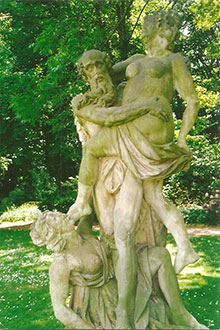 Гётэ кажа Краўсу: «Я сярдзіты на гэтую даму, яна ўзяла верх над разумнай Бранконі. І што ў гэтай Хартфэльд такога, што прываблівае герцага?». Мужчыны выпраўляюцца ў дарогу — скачуць напрасткі на ўсход да замка Зальцдалум. Мясцовасць узвышаная, вока дастае ажно да грады ўзгоркаў Асэ. Толькі той, хто набліжаецца да замка з захаду, з Атцумер Хольтца, можа адзіным позіркам ахапіць парк і палац ва ўсёй раскошы. Сёння ў сонечным святле ззяе золата флюгераў і разлятаецца беласнежнымі пырскамі вада з фантанаў. Гэты французскі парк з ягонымі алеямі, жывымі агароджамі з самшыту, з Парнасам, з ягонымі гротамі і фігурамі з алебастра — проста чароўны сад. Яшчэ больш раскошным адкрываецца воку замак. Аранжарэя і галерэя размяшчаюцца па баках галоўнага палаца ў стылі барока. Будынкі стаяць ступенямі. Блішчыць пакрытая палівай чарапіца на дахах. Эркеры, франтоны і карнізы – сапраўднае багацце колераў: зялёны, жоўты, пурпуровы і зноў, і зноў залаты. Здзіўлены і захоплены Краўс усклікае: «Вэльфы, чорт бы іх пабраў, бяруць прыклад з Караля-Сонца!». Гётэ ўсміхаецца і адказвае: «Гэта падман, сцены зроблены з дрэва, а фасады — толькі тэатральна-дэкаратыўнае мастацтва». Каля галоўных брамаў стаяць адна насупраць адной дзве вартавыя будкі. Калі вартавыя салдаты бачаць вершнікаў, кожны з іх бярэ свой карабін «на каравул». У першым унутраным двары насустрач вершнікам спяшаюцца слугі, якія пытаюць, чаго жадаюць госці. Гётэ перадае ім коней, у яго ў думках перш за ўсё адно: ён хоча ўбачыць легендарную калекцыю карцін. Заходзячы ў Зялёны двор, ён толькі мімаходзь глядзіць на гадзіннікавы павільён. Цяпер, зблізку, палац выглядае заняпалым: чуеца шоргат, цэлыя кавалкі тынку ападаюць са сценаў. Але ў вялікай галерэі ўсё яшчэ заўважная былая раскоша замка. Вялізная зала з яе бакавымі кабінетамі — сапраўдная скарбніца сусветна вядомых карцін. На сценах вісяць палотны Рубенса, Тыцыяна і Рафаэля, Рэмбрандта, Дзюрэра, Кранаха і іншых мастакоў. Краўс у захапленні замірае перад карцінаю з сукаватымі дрэвамі. Гэта «Дубы ля Кверума» пэндзля Ёгана Фрыдрыха Вайча «Пашы»1. Гётэ прагне ўбачыць пэўную карціну — «Партрэт шаснаццацігадовай дзяўчыны» галандца Цэзара ван Эвэрдзінгена. Пасля нядоўгіх пошукаў ён знаходзіць яе. На карціне — маладая жанчына з высокім ілбом, дзіцячым позіркам і цнатлівым выглядам. Яна нагадвае яму Ганну Амалію, герцагіню Вэймарскую. Зачараваныя карцінамі, мужчыны забываюць пра месца і час. Толькі калі ключнік бразгае ключамі, яны думаюць пра ад’езд. Коні напоеныя, мяшкі з кормам знятыя. Краўс і Гётэ шчодра плацяць слугам і скачуць прэч. Перад Машэродэ яны яшчэ раз азіраюцца. Парк і палац, залітыя вечаровым сонечным святлом, здаюцца казкаю з «Тысячы і адной ночы»...