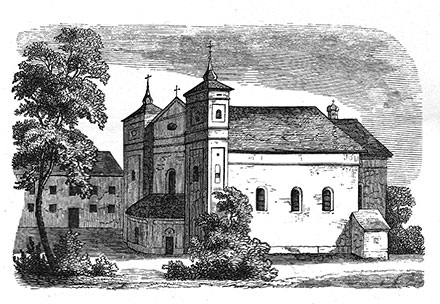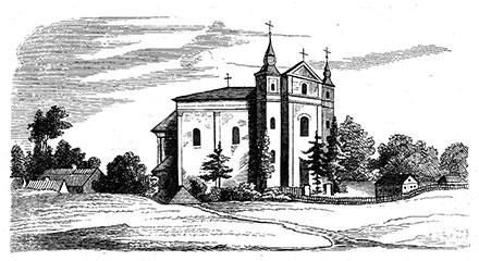 Перамаляваў я яшчэ і амбону, што знаходзіцца ў касцёле, якую рэстаўратар-арганіст, на шчасце, не закрануў. Сваім кшталтам і разьбою яна нагадвае амбону, з якой тры стагоддзі назад славуты Пётр Скарга залатою пальшчызнаю нёс слова Божае вернікам Вільні ў капліцы св. Казіміра. Пад галоўным алтаром касцёла знаходзіцца даволі вялікі магільны склеп; у ім нямала трунаў рознай велічыні, амаль усе гнілыя. Шмат у якіх я падымаў века, і ў кожнай з іх нічога іншага, акрамя парэштак касцей, я не знайшоў. У некалькіх з іх былі змешчаны астанкі ксяндзоў, як можна было здагадацца па парэштках, што засталіся ад арнатаў. Найбольшы гістарычны інтарэс, найбольшую мясцовую цікавасць уяўляюць тут званы, размешчаныя на адной з вежаў касцёла, бо на другой знаходзіцца гадзіннік. Гэта вялікія бронзавыя званы. Подступ да іх даволі цяжкі, немагчыма абысціся без спецыяльнай прылады, каб усё на такой вышыні можна было добра разгледзець. З дапамогаю прыемнага і шчырага ў сваім імкненні мне дапамагчы кс. Стшалецкага за пару гадзін былі пастаўлены рыштаванні, з якіх мне ўдалося агледзець самы вялікі звон. На ім з аднаго боку адлітая выява Маці Божай са святым Дзіцяткам на руках; пад ёю — вялікіх памераў, падзелены на чатыры часткі, гербавы шчыт Бжастоўскіх і іх сваякоў; вакол — шаснаццаць першых літараў, якія азначаюць імя, прозвішча і тытулы фундатараў.