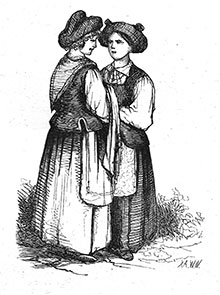 Міхалішскі касцёл мае пры сабе два брацтвы: св. Ганны і св. Ружанца, зацверджаныя буламі Апостальскай Сталіцы, а менавіта папамі Бэнэдыктамі ХІІІ і ХІV — гэтыя булы захоўваюцца ў касцельным архіве. Штогод касцёл святкуе некалькі фэстаў, і сярод іх фэст у гонар св. Антонія лічыцца адным з найбольш значных. У гэты дзень, як толькі настала раніца, навакольны люд ужо пачаў збірацца на вуліцах мястэчка і перад касцёлам. Тут, на чыстай Літве, бо ад ракі Ашмянкі, нібы ад яе натуральнай мяжы, ужо ўсе сляды гэтай народнасці відавочна праяўляюцца, пачынаючы ад мовы, ужыванне якой мы тут сустрэлі, і ажно да асаблівасцяў людзей, і менавіта жанчын, усё адрозніваецца ад суседняга крывічанскага племені. Тут жанчыны высокага росту, у большасці светлавалосыя; насы маюць малыя, акруглыя (а зусім не такія, як у тых — вялікія і правільнай формы); твары доўгія і выцягнутыя. Гэтая розніца, на першы погляд, нязначная, на самай справе даволі важная і характэрная для кожнага, хто звык развіваць свае пошукі з роздумам і ўвагаю, бо ў яе адценнях можна ўгледзець тую дробную разнавіднасць, якая адрознівае між сабою групы плямёнаў. Жаночы строй таксама значна адрозніваецца ад строю, ужыванага нашымі сялянкамі; на дзяўчатах гэта назіраецца ў меншай ступені, бо тут, як і ў нас, носяць хусткі на галаве, толькі большыя і па-іншаму завязаныя; носяць гарсэты, стракатыя фартушкі, любяць пацеркі і бліскаўкі і ўпрыгожваюць галаву шматлікімі кветкамі, якія робяць іх галовы больш вялікімі, чым правільнымі: гэта лепш выяўляе ва ўборах элегантнасць і стараннасць. Бачыў я ў касцёле некалькі стройных дзяўчат, якія мелі на галаве па дзве вялізныя півоні. Маладыя замужніцы адрозніваліся ад дзяўчат кісейнымі чапцамі і хустачкамі, што пакрывалі іх плечы. Сталыя жанчыны, гэтыя вясковыя матроны, апранаюцца зусім іначай: не знойдзеш тут ні нашай палатнянай наміткі, ні шэрай сярмяжнай світкі — яны носяць на галаве каптуры; жакеткі ў іх багатыя, як належыць заможным. Каптуры гэтыя носяць у форме нібыта біскупавай мітры, зробленыя з багатага шоўку ці з блішчастай парчы, і невялікую хустку, абкручаную каля ілба вакол галавы, з-пад якой выходзяць два «вухі» з той самай багатай матэрыі, у многіх яны ўпрыгожаны кісейнаю каймою ці каронаю, што ўтварае найвышэйшую элегантнасць. На каляровай спадніцы і вельмі стракатым фартуху яны носяць сурдуцікі з цёмна-сіняга сукна, з аксамітным каўнерам, з бліскучымі гузікамі; зроблены яны да таліі і заканчваюцца вышэй каленяў, а ззаду часта збіраюцца ў складкі; у некаторых я бачыў пры гэтым сурдуціку пелярыну. Мужчыны апрануты не менш шляхетна: яны носяць нейкія сурдуты з шэрага сукна, крой якіх цяжка апісаць — нешта сярэдняе паміж старым капотам і сучасным сурдутам, усе ў доўгіх ботах, часта па верху падперазаныя чырвоным пасам. На працягу гэтага аповеду шматразова згадвалася пра род Бжастоўскіх. Мы яшчэ раз вернемся да гэтага імені і скажам, што праз пару вёрстаў ад мястэчка ёсць яшчэ і сядзіба Міхалішкі — некалі пышная, прыналежная гэтаму вядомаму ў краіне роду рэзідэнцыя, рэшткі якой сёння ледзьве захаваліся. Палац у тых Міхалішках, што некалі славіўся гасціннасцю і гучным жыццём і без перапынку адчыняў свае шырокія дзверы перад гасцямі розных рангаў і вартасці, бо, як сцвярджаюць, прымаў ён і каралёў, — у 1812 годзе быў спалены французамі, і з прычыны раз