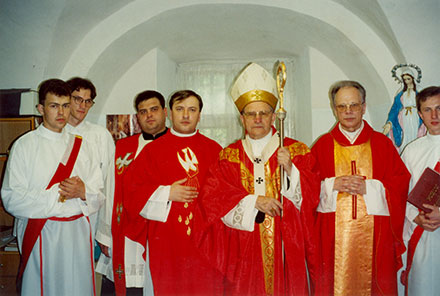 …У той час яшчэ не было сотавых тэлефонаў, але трубка ўжо не была прывязаная да тэлефона провадам, што дазваляла свабодна рухацца, калі не сядзелася падчас размовы. Голас, які я пачуў у тэлефоне, добра пастаўлены, упэўнены, меў адметны тэмбр. Была ў ім лёгкая арыстакратычная высакамернасць. Словы гучалі няспешна, з ледзьве ўлоўным незразумелым акцэнтам, што надавала рытміцы і мелодыцы маўлення абаяльную своеасаблівасць. Уладальнік голасу сказаў, што ён ксёндз Ян Шуткевіч, і тэлефануе мне па рэкамендацыі арцыбіскупа Казіміра Свёнтка. Ксёндз прапанаваў мне сустрэцца па адрасе Плошча Свабоды, 9. Мы сустрэліся ў адным з пакояў прыбудовы фасада «Дома фізкультуры», які шмат гадоў хаваў фасад касцёла XVIIІ стагоддзя. Дні гэтай прыбудовы заканчваліся, і я падумаў, што і пакой — месца, дзе мы сустрэліся, таксама хутка знікне, быццам яго і не было, і застанецца толькі прывід, захаваны ў маёй памяці на ўзроўні другога яруса вежаў адноўленага касцёла… Цяпер тое жыццё, напоўненае радаснымі ілюзіямі, здаецца шчаслівым сном, прадвесцем новага жыцця… Размова ішла пра даследаванне сценаў і скляпенняў помніка архітэктуры на прадмет наяўнасці роспісаў. Гледзячы на маладжавага ксяндза, я намагаўся вызначыць яго ўзрост і зразумець, хто перада мною: наперадзе была доўгая сумесная праца, у якой важным было агульнае разуменне праблемаў рэстаўрацыі. Высветлілася, што ксёндз Ян, будучы студэнтам дырыжорскага факультэта Маскоўскай дзяржаўнай кансерваторыі, сябраваў з рэстаўратарам. У нас раптам адшукаўся агульны знаёмы — Віктар Васільевіч Філатаў, вядомы аўтар адзінага ў СССР падручніка па рэстаўрацыі тэмпернага жывапісу. Гэта зрабіла нашы адносіны больш даверлівымі… На жаль, ксёндз Ян нядоўга (1994–1997) выконваў абавязкі пробашча ў мінскай архікатэдры. Думаю, калі б ён прадоўжыў служыць пасля кансэкрацыі касцёла, то і катэдра сёння выглядала б інакш, ва ўсялякім разе скляпенні бакавых наваў пэўна былі б раскрытыя. Пацвярджэннем гэтаму — касцёлы ў Паставах і Лынтупах, да рэстаўрацыі якіх ксёндз Ян прыклаў сваю энергію, веды і густ. Ды і касцёл беларускай дыяспары ў Вільнюсе, падняты з разрухі і занядбання, таксама сведчыць пра творчыя і арганізатарскія здольнасці ксяндза Яна. Аднак ці ж мне з нартэкса разважаць пра святароў? Не ўмеючы спасцігнуць святасць рэчаіснага, я толькі назіраў за тым, хто чыніў святыя дзеянні. Намагаючыся прывесці сваю душу ў адпаведнасць з малітваю і казаннем таго, хто абвяшчаў Божае слова, я думаў пра рознае. Зрэшты, пра ксяндзоў я мяркую па іх адносінах да маёй справы — справы рэстаўрацыі мастацкіх помнікаў…