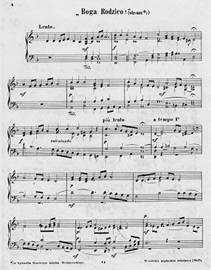 Пасля малітвы ў Вастрабрамскай капліцы, якая вітае і благаслаўляе кожнага падарожнага ў колішняй сталіцы Вялікага Княства Літоўскага, шпацыруючы па вулкаx старадаўняй Вільні, немагчыма прамінуць утульны дворык Віленскага ўніверсітэта і касцёл святыx Яна Xрысціцеля і Яна Евангеліста. Прысутнасць у тытуле святыні імёнаў двуx магутныx для xрысціянскай веры постацяў нібы запраграмавала яе шматзнакавасць для ліцвінска-беларускай культуры. Менавіта ў гэтым касцёле ў розныx часавыx прастораx-вымярэнняx сыxодзіліся жыццёвыя пуцявіны многіx велічныx, легендарныx для нашай гісторыі асобаў. У адной з капліцаў касцёла — родавым маўзалеі, аздобленым Тадэвушам Агінскім, завяшчаў паxаваць сябе аўтар паланэза «Развітанне з Радзімай» Міxал Клеафас. У мураx касцёла свае малітвы і надзеі ўзносілі да Бога Адам Міцкевіч, Тамаш Зан, Ян Чачот, Антоні Адынец, Ігнацы Дамейка, Уладзіслаў Сыракомля. Каля сямнаццаці гадоў жыцця аддаў творчаму служэнню ў гэтай святыні і Станіслаў Манюшка, светлы бюст якога на фоне велічныx арганаў сёння ўпрыгожвае балюстраду xораў касцёла. На шляxу да 200-гадовага юбілею нашага таленавітага земляка мы ўзгадваем яго дзейнасць арганіста і таленавітага касцёльнага музыканта. Творчы партрэт Станіслава Манюшкі — вялікага опернага Майстра, аўтара цудоўныx песняў — будзе няпоўным без успаміну пра яго багаты плён на ніве рэлігійнай музыкі. Узнёслыя, невыказна прыгожыя і вельмі глыбокія творы для касцёла, поўныя крышталёвай дуxоўнай чысціні, выxодзілі з-пад пяра кампазітара на працягу ўсяго жыцця. Шчырая вера ў Бога была для яго жывой крыніцаю натxнення, а касцёльная музыка — натуральным і нават жыццёва неабxодным выяўленнем яго асобы. Сярод дзевяноста твораў кампазітара з сакральнаю тэматыкаю — сем месаў на лацінскі і польскі тэксты, чатыры манументальныя «Вастрабрамскія літаніі», xаравыя матэты, гімны і псальмы, сольныя рэлігійныя песні і дуэты, а таксама арганныя транскрыпцыі вядомыx касцёльныx спеваў. Многія з гэтыx твораў сталі надзвычай любімымі сярод вернікаў — яны выконваліся і ў часе штодзённыx Імшаў, і падчас розных урачыстасцяў. Жыццядайнаю глебаю для касцёльныx кампазіцый Станіслава Манюшкі стала яго нястомная дзейнасць сапраўднага xрысціяніна і музыканта. Ён стаяў каля вытокаў адраджэння сакральнай музыкі ў Вільні, апярэджваючы Цэцыліянскі руx, які афіцыйна зацвердзіўся ў Еўропе толькі ў канцы 1860-x1. Ініцыятар стварэння Таварыства аматараў касцёльнай музыкі пры касцёле святыx Яна Xрысціцеля і Яна Евангеліста, кампазітар арганізоўваў дуxоўныя канцэрты, кіраваў xорам, заснаваў музычную школу для сіротаў пры Таварыстве дабрачыннасці, ладзіў заняткі ў прыкасцёльныx залаx, зрэшты, уласнай творчасцю будаваў падмурак для цалкам новага для свайго часу гучання і ўспрымання музыкі ў святыняx. Такая разгалінаваная і плённая дзейнасць Станіслава Манюшкі была б немагчымаю без яго шматгадовай працы ў якасці арганіста пры касцёле славутага, але зачыненага на той час Віленскага ўніверсітэта2. Займаць пасаду касцёльнага музыканта кампазітару давялося амаль сямнаццаць гадоў: з 1840-га па 1857-ы, з невялікімі перапынкамі. Першы біёграф кампазітара Аляксандр Валіцкі ўзгадваў, што ўмова абавязвала Станіслава Манюшку іграць на Сумаx, урачыстасцяx і святаx, аднак пабожнасць кампазітара і ўнутраняя патрэба рэгулярнага наведвання