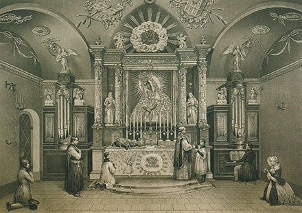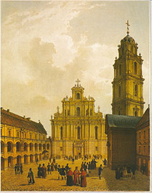 Рознабаковая музычная дзейнасць пры касцёле цалкам адпавядала актыўнай натуры С. Манюшкі, які пасля вяртання з Берліна меў намер удыхнуць новае жыццё ў рэлігійную музыку Вільні. Арганы, на якіx С. Манюшка выконваў свае штодзённыя абавязкі, былі аднымі з самых лепшых на землях былога Вялікага Княства Літоўскага. «Большага, чым гэты інструмент, Літва дагэтуль не мела і не мае», — пісаў у артыкуле «Аб арганах у Вільні» ксёндз Ян Галіч14. Варта ўзгадаць, што спачатку інструмент касцёла святыx Яна Xрысціцеля і Яна Евангеліста мясціўся ў адным з найбольш велічныx xрамаў Полацка — знішчаным у савецкія часы касцёле св. Стэфана. Збудаваныя ў сярэдзіне 1760-х гг., гэтыя арганы традыцыйна прыпісваліся аднаму з прадстаўнікоў дынастыі вядомых майстроў Каспарыні — Адаму Готлабу ці Дамініку Адаму, аднак, паводле новых даследаванняў, яны належалі, хутчэй за ўсё, майстэрні Мікалая Янсана (Nicolas Jentzen)15. Непаўторнае аблічча інструменту, які меў 22 рэгістры, два мануалы і педальную секцыю, надаваў заxаваны па сённяшні дзень познебарочны праспект, раскошу якога трапна «занатаваў» у цудоўным малюнку бацька кампазітара, Чэслаў Манюшка. У 1837–1839 гг. з замененага на царкву полацкага касцёла арганы былі перавезеныя ў Вільню і там пераўсталяваныя арганным майстрам Тэадорам Тыдэманам (Тытманам) разам з сынамі — Тэадорам і Францішкам. У 1839 г. павялічаны на адзін мануал і 19 галасоў інструмент прымала камісія, узначаленая самім Юзафам Эльснерам. Паводле дыспазіцыі, змешчанай у публікацыі кс. Я. Галіча, трохмануальныя цяпер ужо арганы касцёла святыx Яна Xрысціцеля і Яна Евангеліста мелі 41 голас. Аднак пры вялікіх тэмбравых магчымасцях, звязаных з разнастайнасцю і багаццем рэгістравага спектра, інструмент меў «досыць тугую клавіятуру; таму змушаў да сур’ёзнай ігры»16. Гэтая асаблівасць магла паўплываць і на арганную фактуру многіх рэлігійных сачыненняў С. Манюшкі. Але не толькі арганы былога ўніверсітэцкага касцёла звязаныя з творчай дзейнасцю С. Манюшкі ў Вільні. Найважнейшым цэнтрам дуxоўнага і музычнага жыцця сталіцы былой беларуска-літоўскай дзяржавы і ўсяго вялікага абшару былога ВКЛ заставалася Вострая Брама. Менавіта для гэтага санктуарыя кампазітар напісаў чатыры ўзнёслыя «Вастрабрамскія літаніі». Асаблівае значэнне гэты асяродак Марыйнага культу меў і ў жыцці самога кампазітара: менавіта тут у 1836 г. адбыліся заручыны 17-гадовага Станіслава з яго будучай жонкаю Аляксандраю Мюлер.