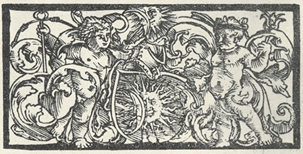 А зараз мы звернем увагу на вельмі важныя дэталі партрэта. Злева і справа ад постаці Ф. Скарыны на геральдычных шчытах, на якія абапіраюцца ільвы (постаці таксама геральдычныя), змешчаны два знакі: